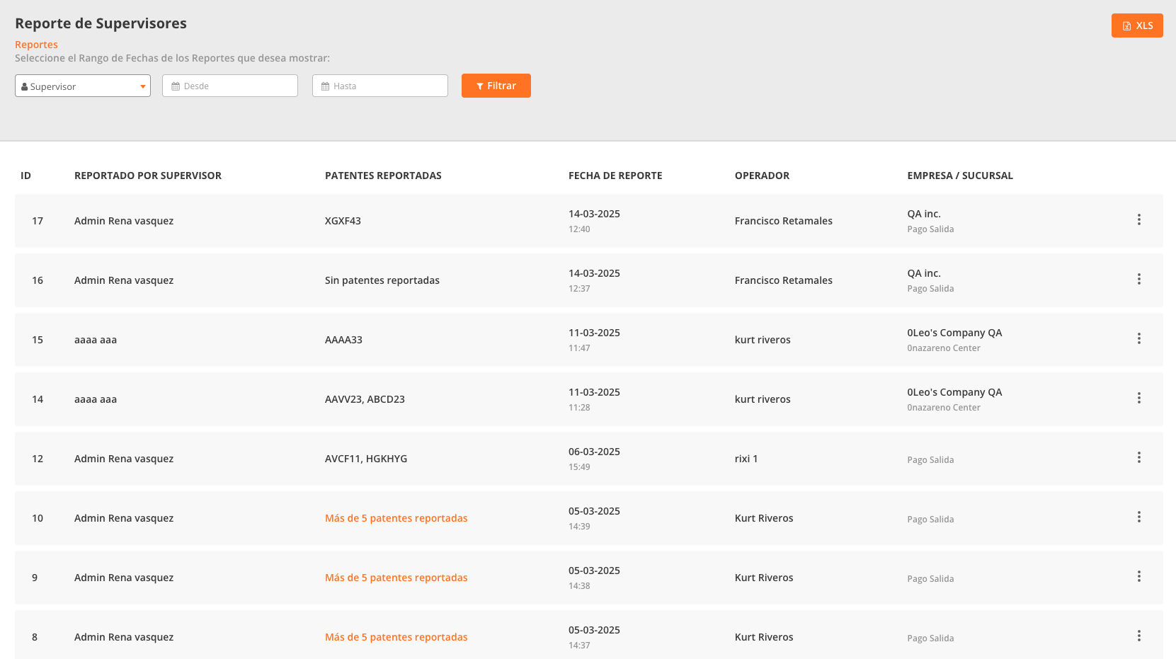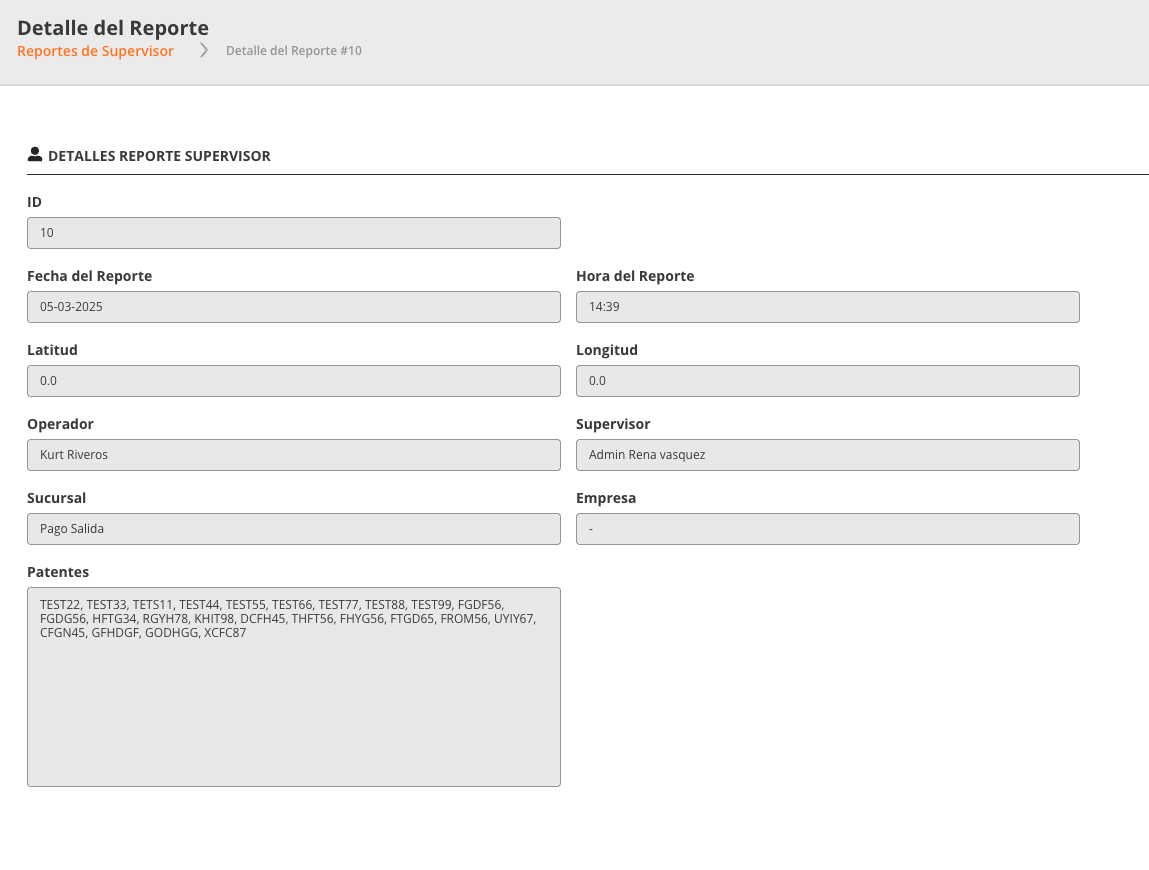 El Reporte de Supervisores permite visualizar los informes generados por los supervisores desde la aplicación de supervisor