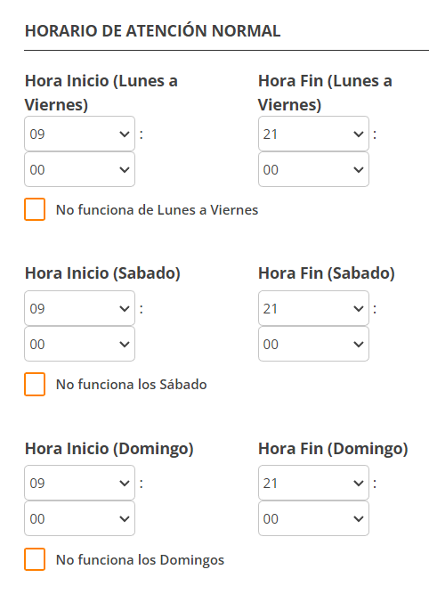 5.Complete y/o actualice el horario de atención de su preferencia.