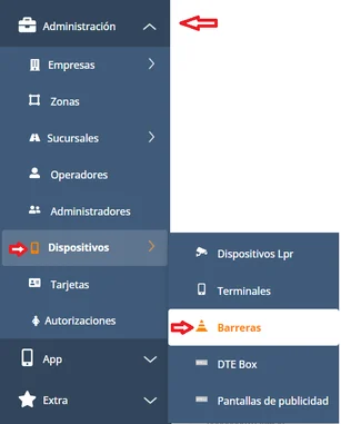 2- Pincha en Administraci贸n > Dispositivos > Barreras.
